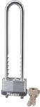 The Master Lock No. 517D laminated padlock features a 1-3/4 in wide laminated steel body for strength and reliability. The 9/32 in Dia shackle can be adjusted from 2-3/4 in to 5-3/8 in long for application flexibility and is made of steel, offering strong resistance to cutting. The warded single locking lever mechanism minimizes jamming from dirt and grime. The limited lifetime warranty provides peace of mind from a brand you can trust.