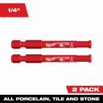 Our Diamond MAX��� hole saws offer you up to 10X longer life when cutting tile, stone and glass. Diamond MAX��� hole saws deliver industry leading performance, with higher grade diamonds for maximum heat and fracture resistance. An improved continuous brazed edge provides clean, excellent joint strength and better diamond retention when cutting hard, abrasive materials. The Milwaukee�� one-piece hole saw has a 1/4 in quick-change hex shank and features a large slug ejection slot. These diamond hole saws are designed as a single cutting solution for all cutting tile, stone and glass applications. Diamond MAX��� offers you the lowest cost-per-hole on the market.